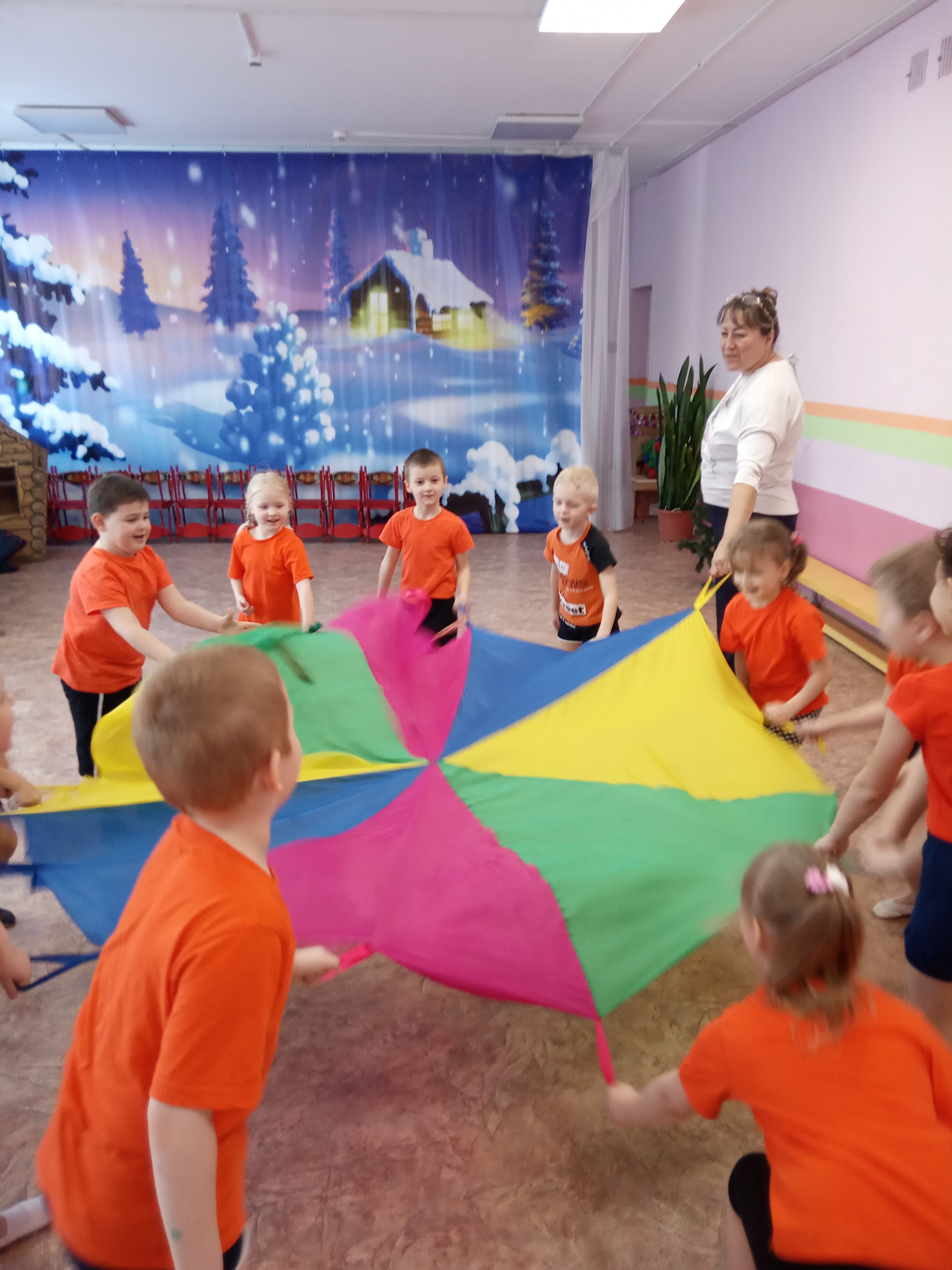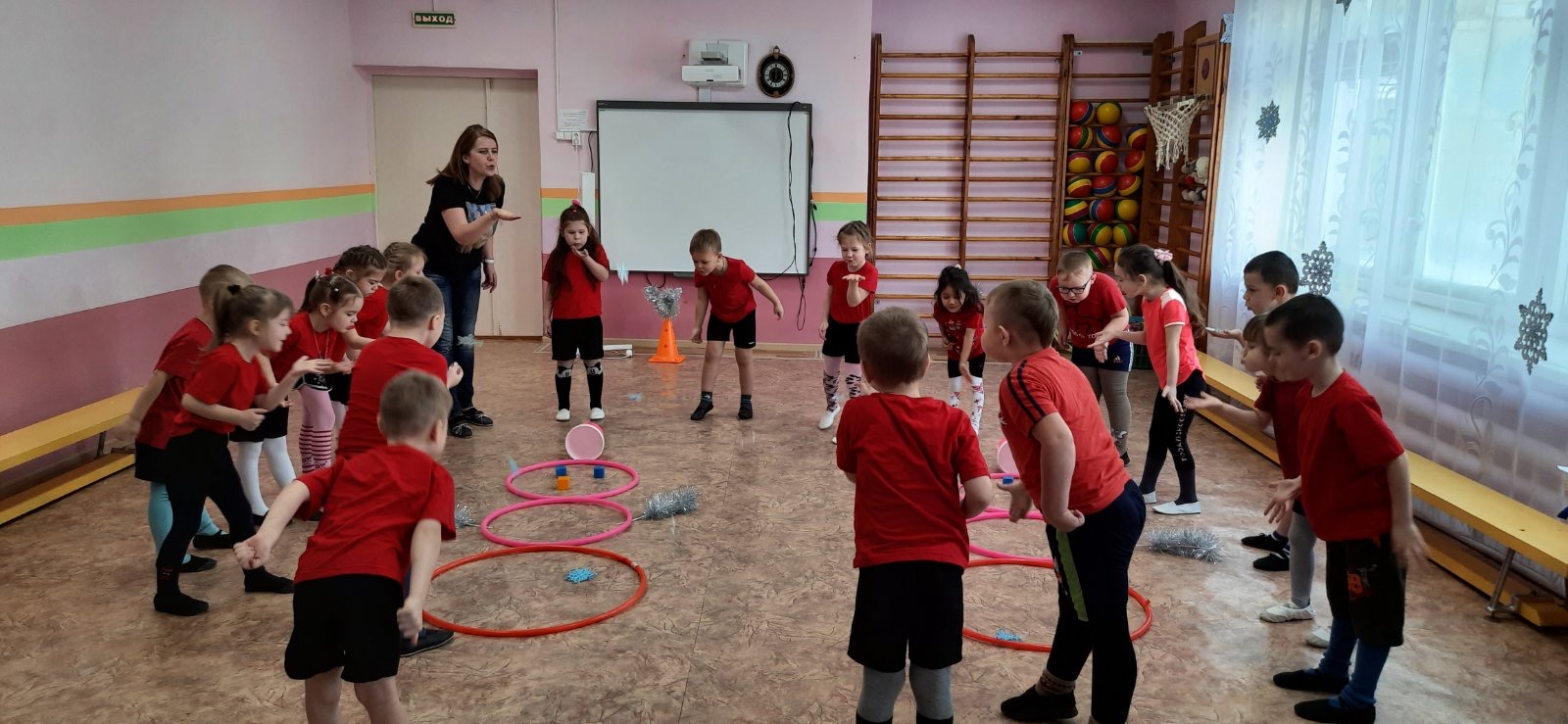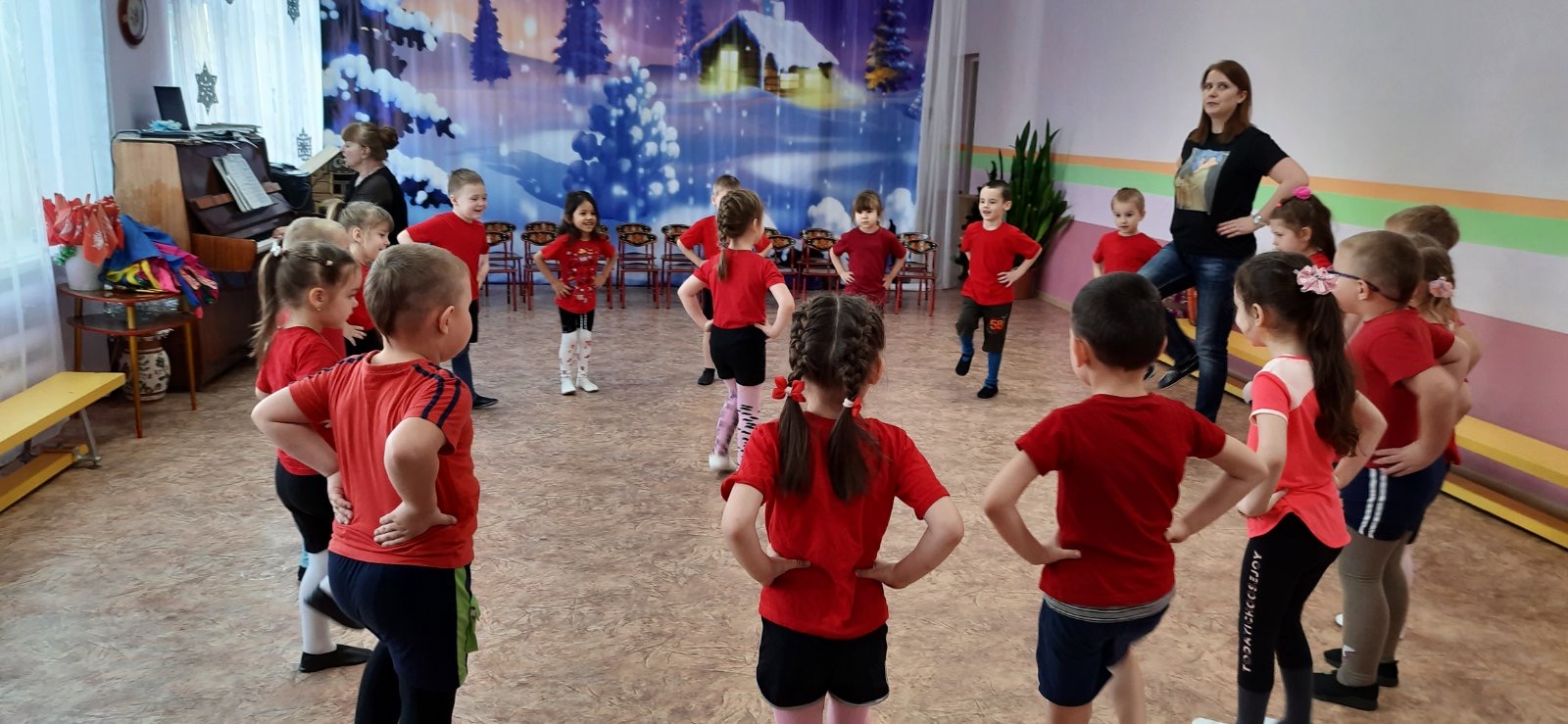 В музыкальном зале чувствовалась весёлая и дружелюбная атмосфера, несмотря на то, что при проведении эстафет присутствовал соревновательный момент.