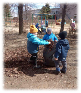Всю неделю мы с ребятами трудились на своём участке: собирали мусор, подметали под навесом, дорожки, окапывали и поливали посаженные кусты. Дети остались довольны своим трудом!