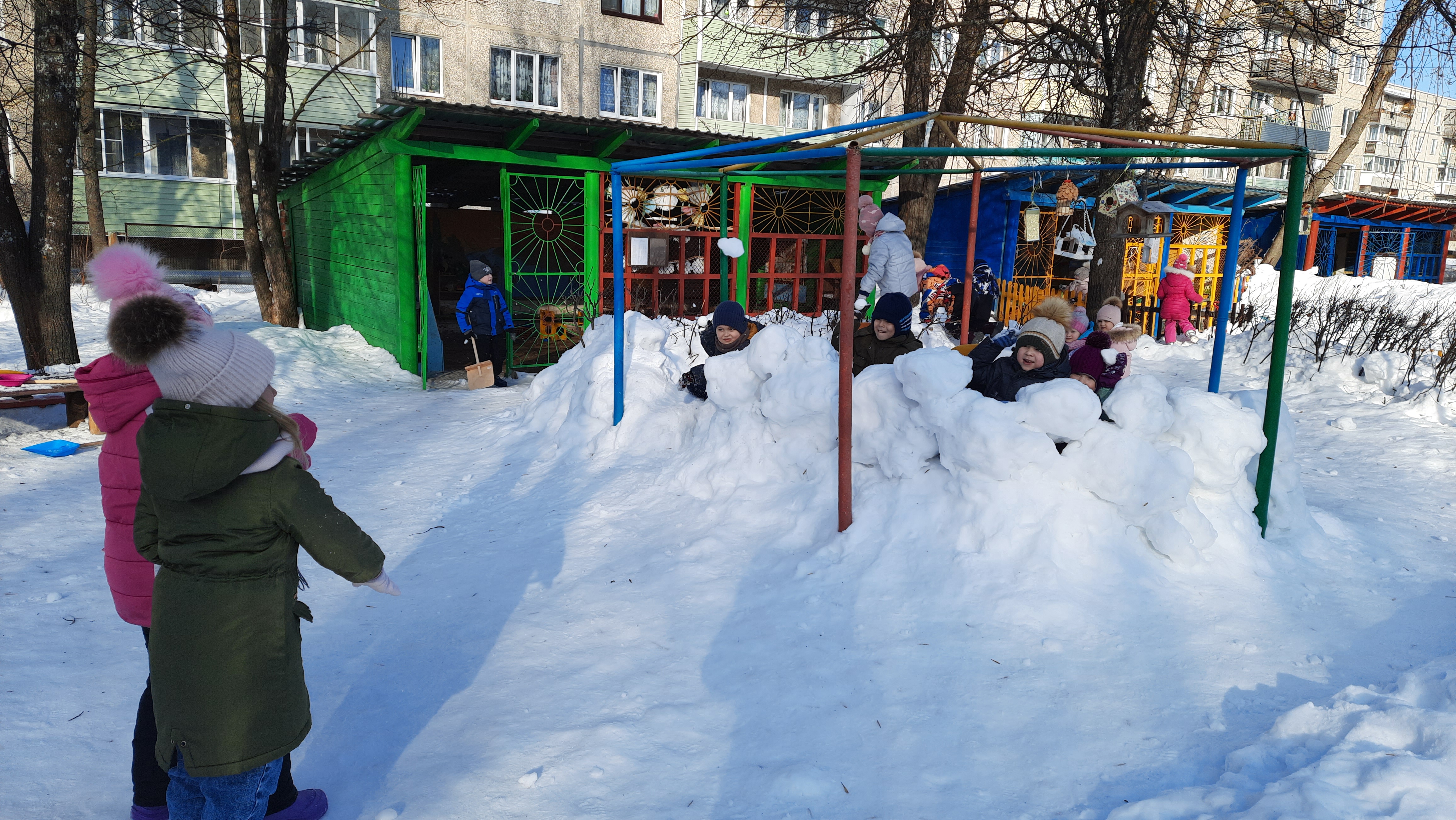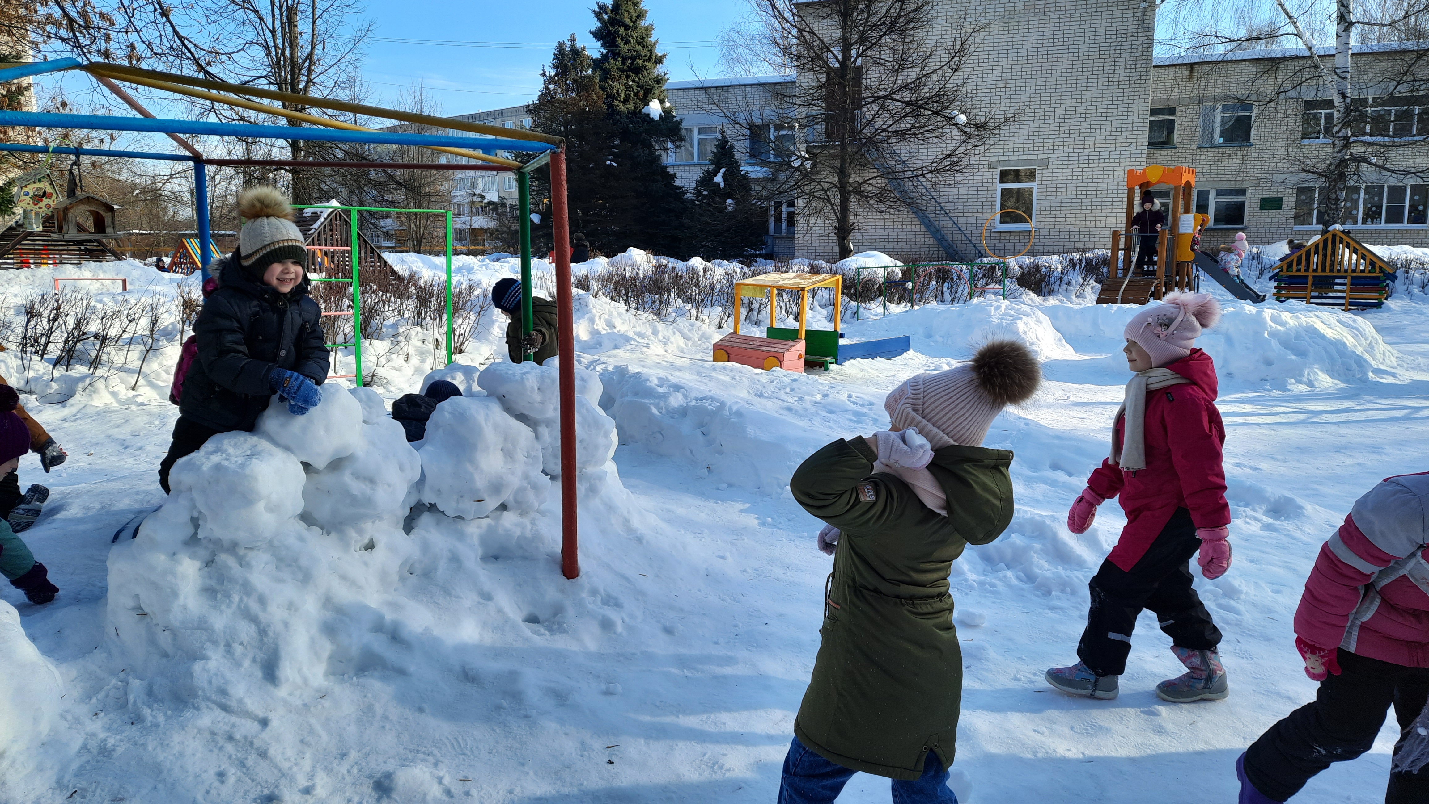 В нашем детском саду зимой на участках появляются снежные постройки. Создание снежных построек обогащает зимнюю прогулку, помогает рационально организовать время пребывания детей на свежем воздухе, создать условия для развития их самостоятельной игровой, познавательной деятельности, двигательной активности.