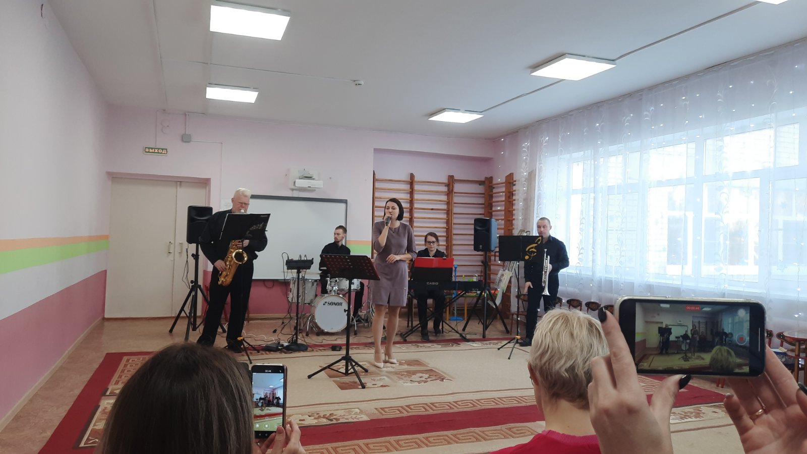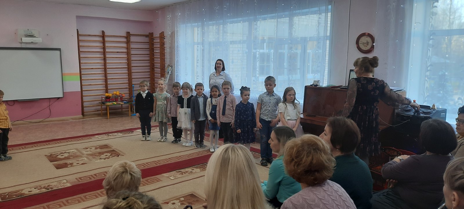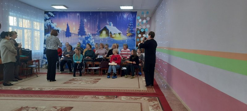 Они поделились своим опытом работы с музыкальными руководителями района. Дети группы компенсирующей направленности продемонстрировали свои умения играть в оркестре звуками человеческого тела ,на музыкальных инструментах. Дети подготовительной к школе группы очень интересно сопровождали чтение стихотворений игрой на музыкальных инструментах, песней поздравили гостей с наступающим новым годом. Сюрпризом для гостей было выступление «Народного коллектива» камерного ансамбля преподавателей Ставровской ДМШ «Арт-плюс» (руководитель Кокорина А.Е.)