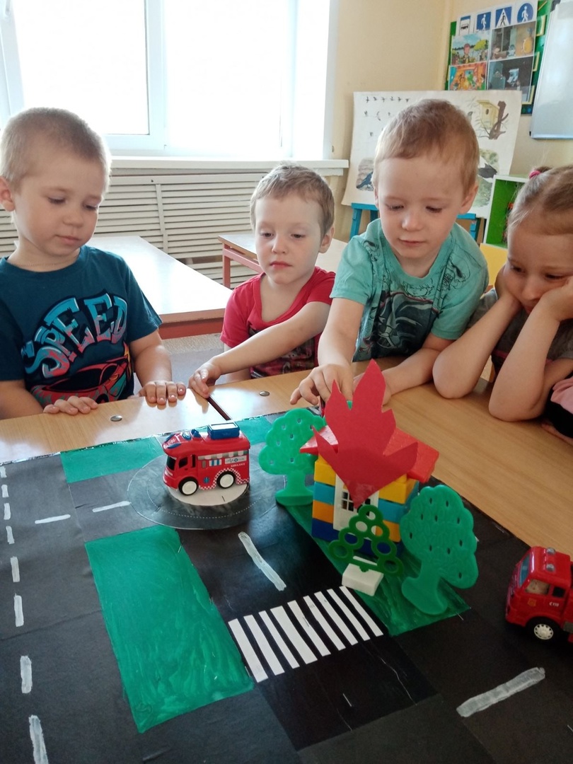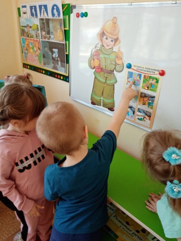 - проведены беседы «Это спичка-невеличка», «Пожарный - герой , он с огнем вступает в бой, «Служба 01» , ситуативный разговор «Костер в лесу,«Спички- не игрушка»;