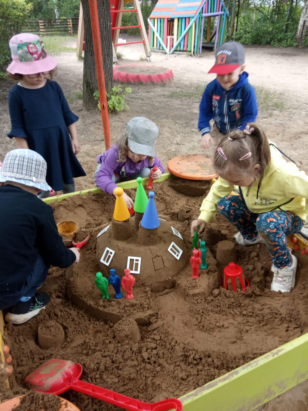В рамках мероприятий на летний оздоровительный период в детском саду состоялся конкурс среди всех возрастных групп на лучшую постройку из песка «Волшебный замок из песка». Целью конкурса было совершенствование творческого потенциала детей через создание построек из песка, в котором приняли участие педагоги и дошкольники.