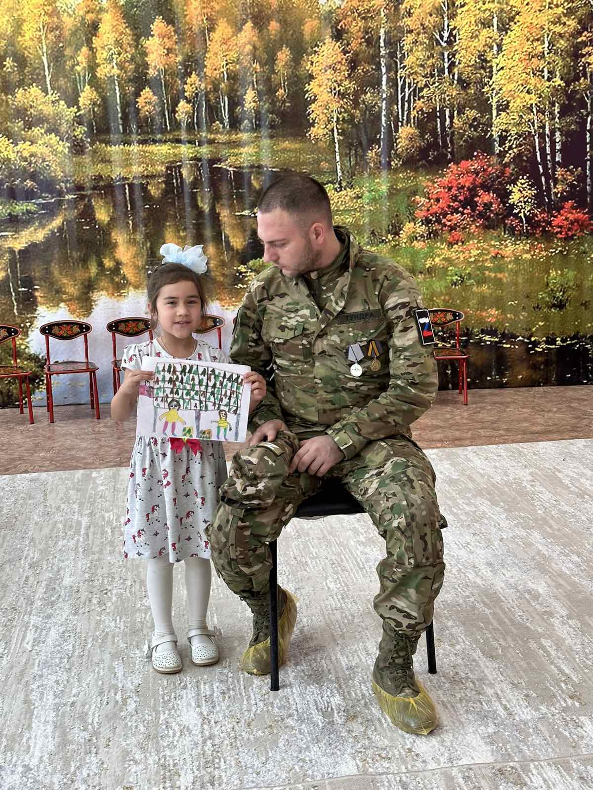 Встреча проходила в очень теплой обстановке. Ребята подготовительной к школе группы и группы компенсирующей направленности очень внимательно слушали рассказ бойца. Вячеслав рассказывал, где служил в армии, где сейчас защищает нашу Родину, какими чертами характера должен обладать настоящий защитник, как важно быть сильным и смелым. Дети задавали вопросы нашему солдату: " Как стреляет пушка? Видели ли вы танк? Как живете на фронте? Чем питаетесь? " А Вячеслав очень доступно, где - то с юмором, отвечал нашим любопытным деткам".