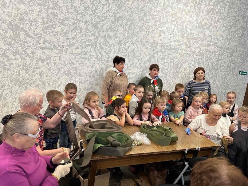 В нашем детском саду уделяется особое внимание патриотическому воспитанию детей. Воспитанники подготовительной к школе группы и группы компенсирующей направленности вместе с педагогами посетили Центр культуры и спорта. В данном центре вот уже больше года работает волонтерское объединение " МЫ ВМЕСТЕ". Наталья Бородина, участница волонтерского объединения, организовала экскурсию и рассказала о проводимой акции, о применении защитных сетей для маскировки бойцов, вооружения, военной техники, инженерных сооружений. Дети слушали с большим интересом, задавали вопросы. Нашим ребятам показали, как и из чего плетутся сети.
