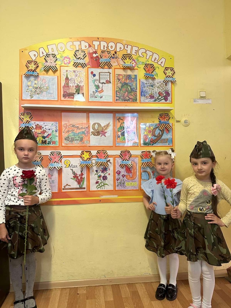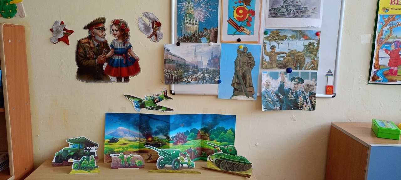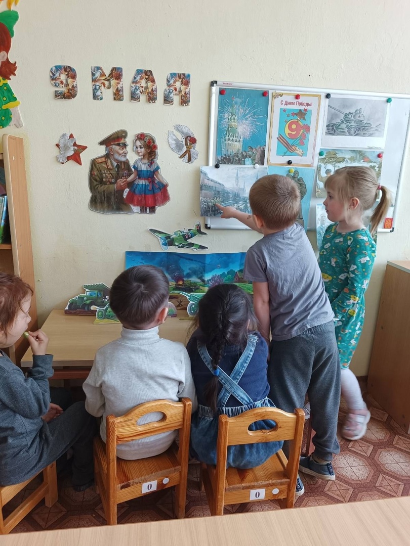 В преддверии празднования Дня Победы в нашем детском саду прошли мероприятия в рамках тематической недели «День Победы». С воспитанниками детского сада проводились беседы,рассматривали картинки, иллюстрации, открытки военной тематики, изготавливали тематические открытки,поделки. Дети читали стихи, пели песни военных лет. Педагоги познакомили дошкольников с символами Победы: орден «Победа», георгиевская лента, Вечный огонь.