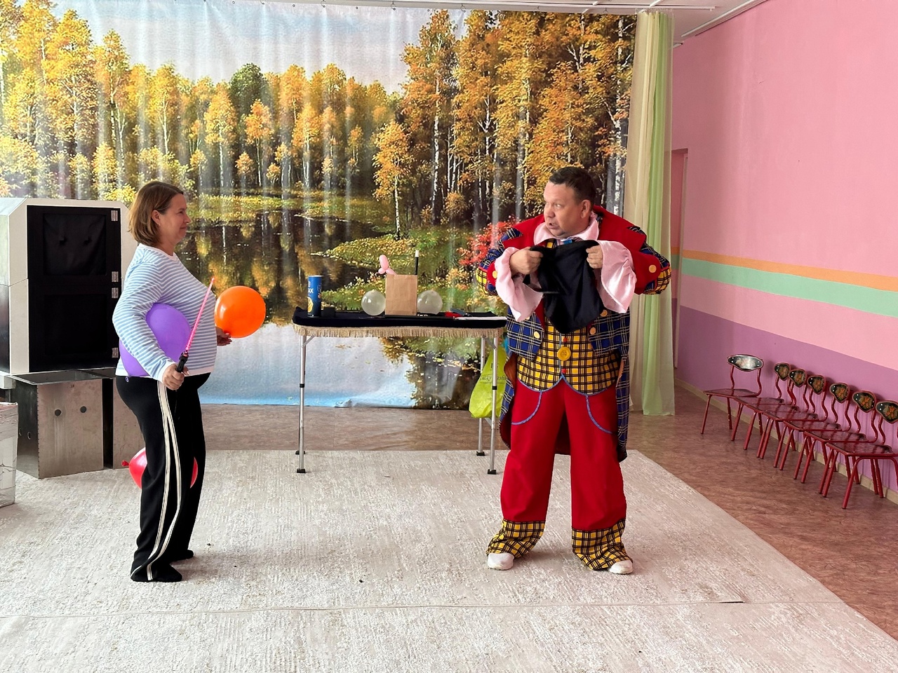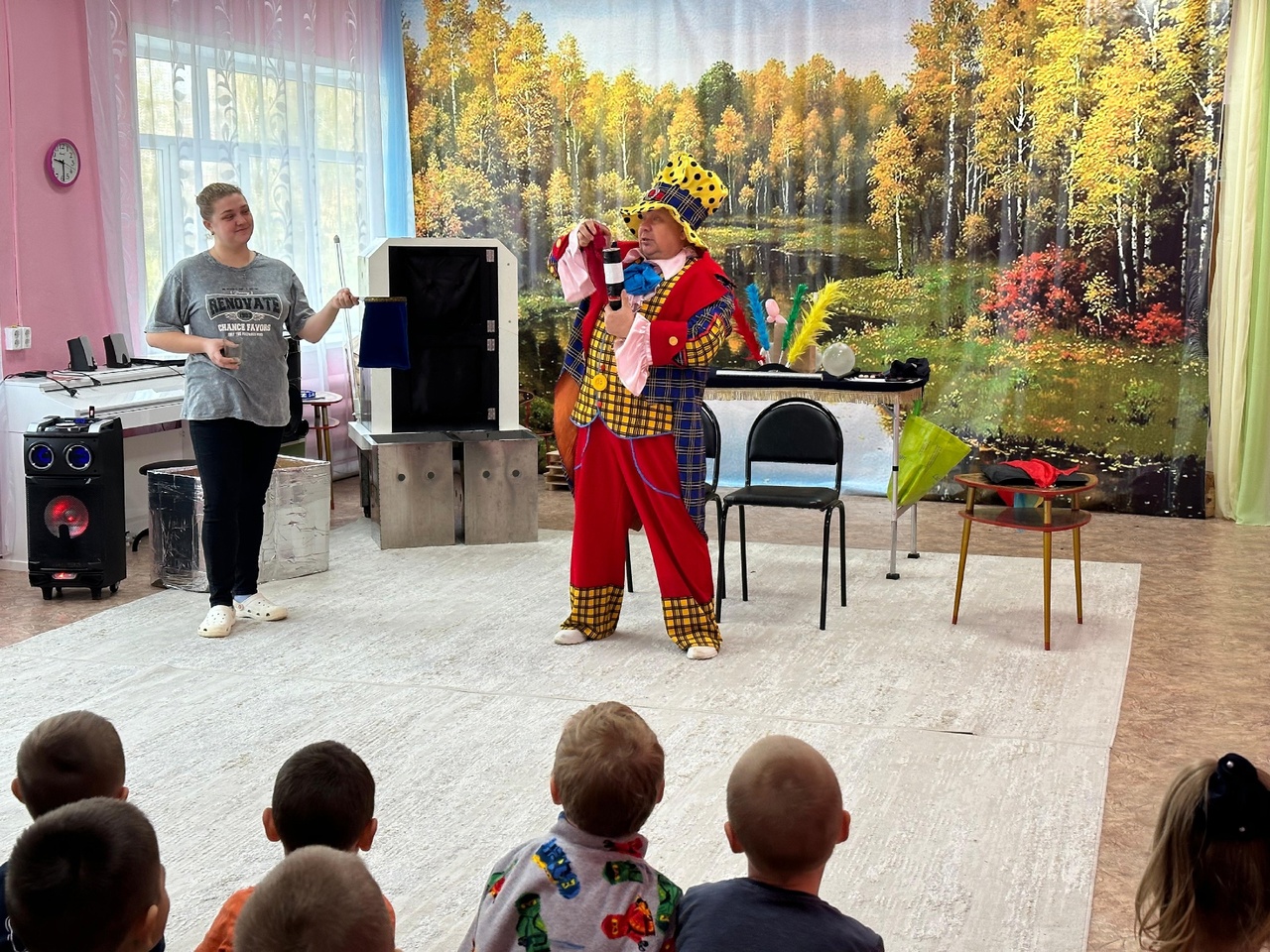 На праздник в гости к ребятам пришел фокусник Сергей Ильин. Он встречал детей шутками и смехом, проводил с ними веселые игры, аттракционы,розыгрыши.