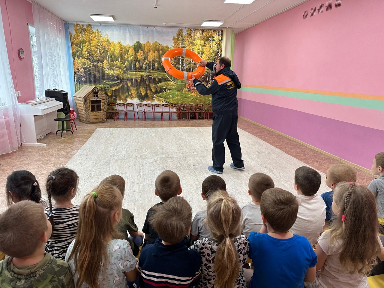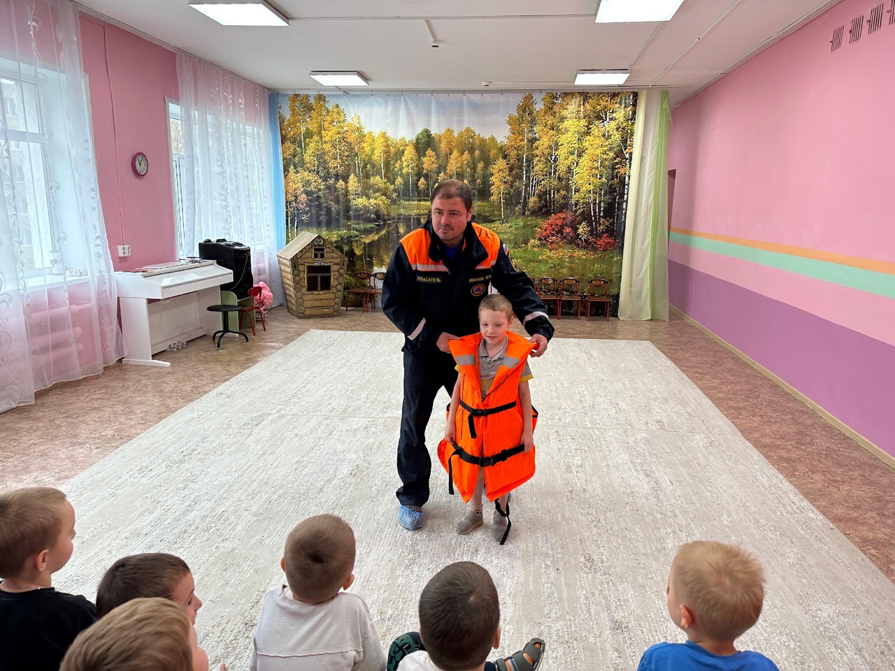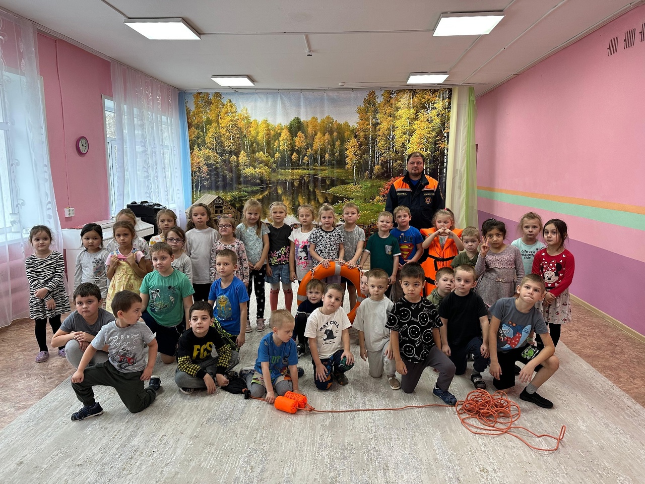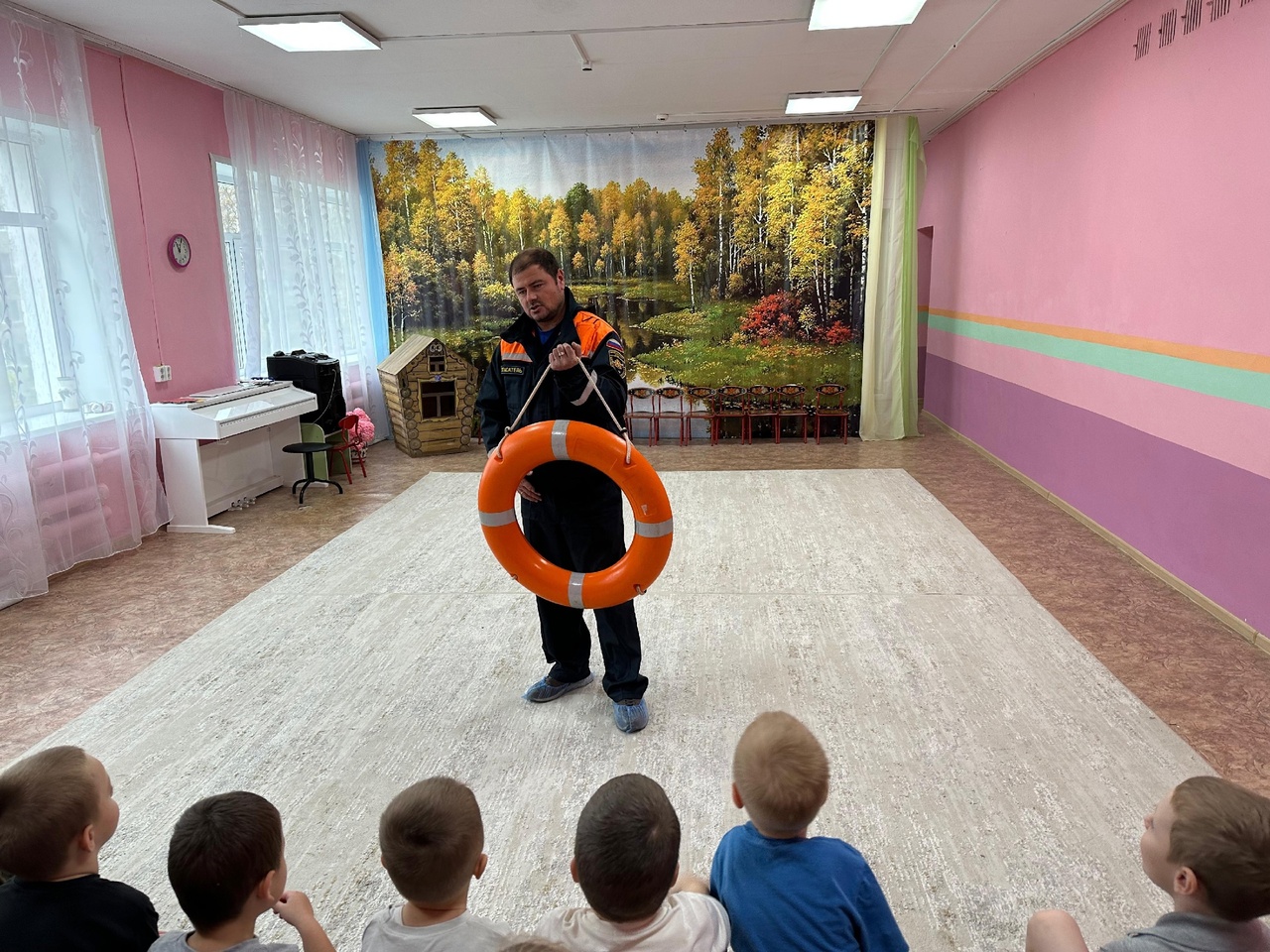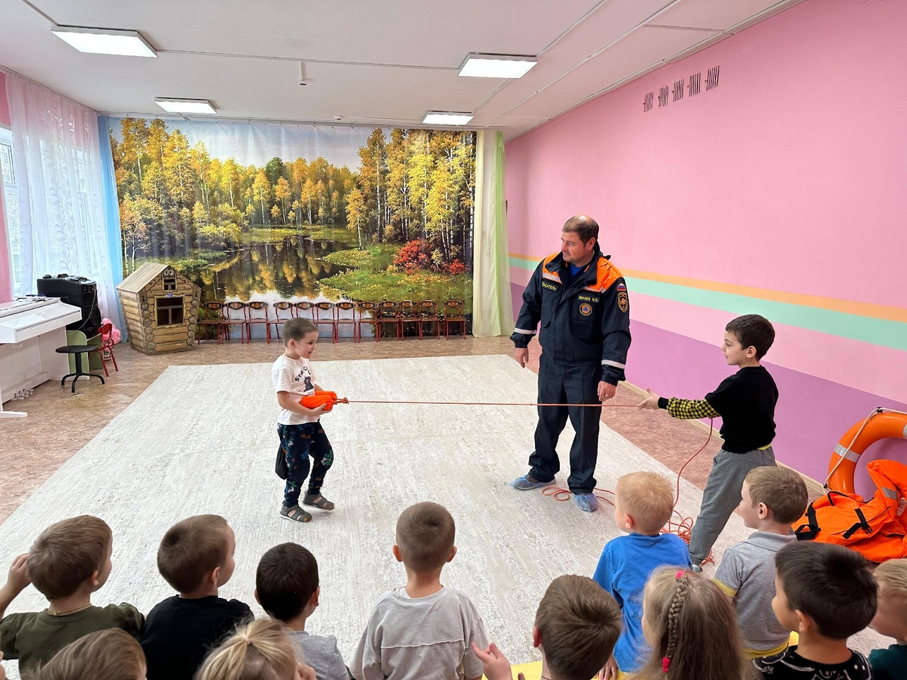 Работник спасательной службы проинформировал дошколят о том, что с наступлением заморозков на реках, озёрах и прудах образуется лёд, который кажется прочным, однако на деле он очень хрупкий и опасный. Спасатель объяснил, что такая ледяная корка не выдержит на себе вес взрослого человека или ребёнка. Ещё специалист продемонстрировал ребятам, как помочь человеку, который всё-таки провалился, и как выбраться самостоятельно, если ты сам оказался в беде. В заключение спасатель настойчиво попросил малышей отказаться от прогулок и игр на хрупком льду.