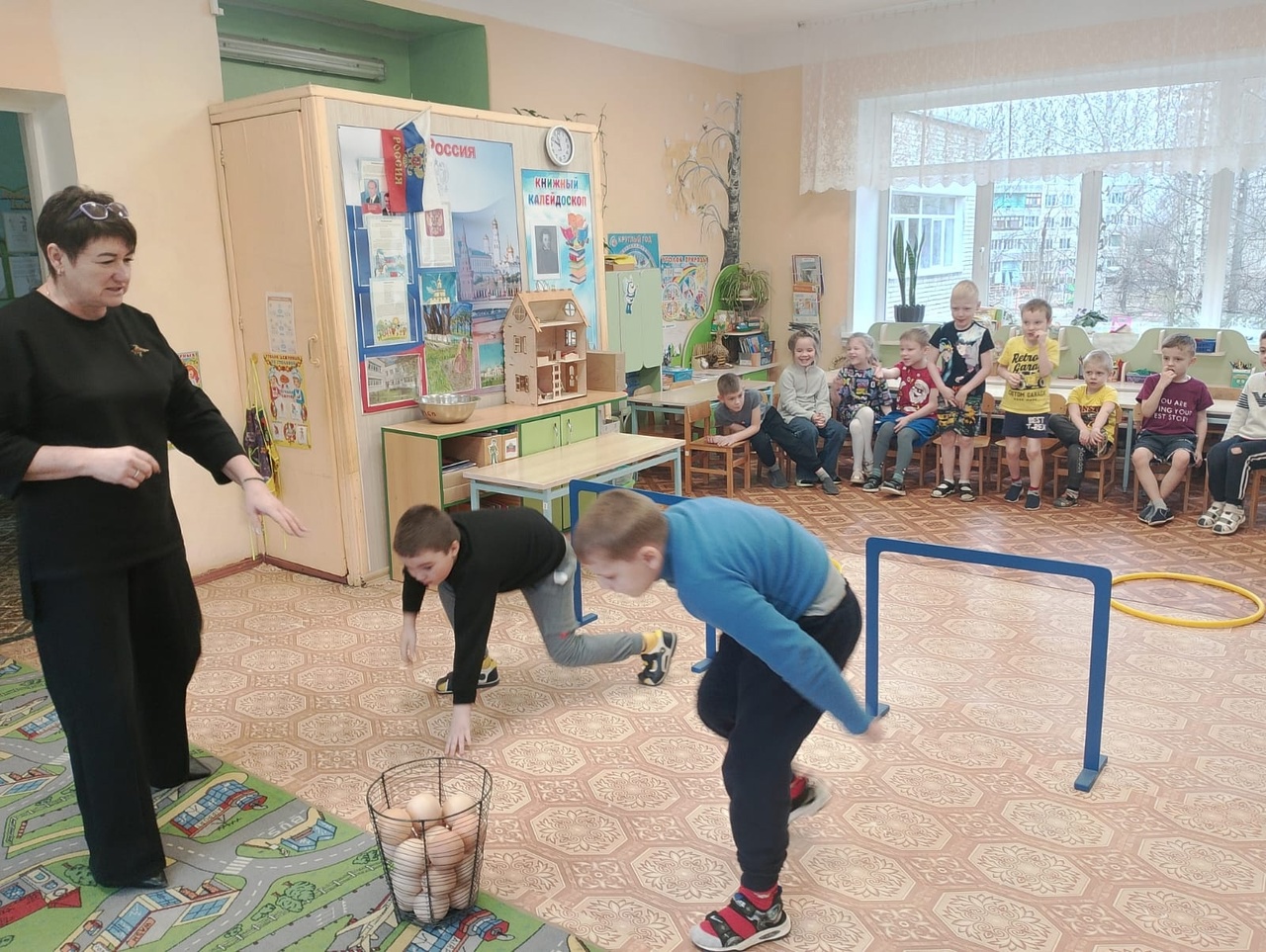 "Логоспортландия" в детском саду — это физкультурно-речевой досуг. Во время него дети, преодолевая препятствия, подбирали слова и предметы с заданным звуком, выполняли упражнения на дифференциацию согласных звуков и участвовали в игровых эстафетах. Эта нестандартная форма обучения активизирует детей, развивает чувство коллективизма и самоконтроль.