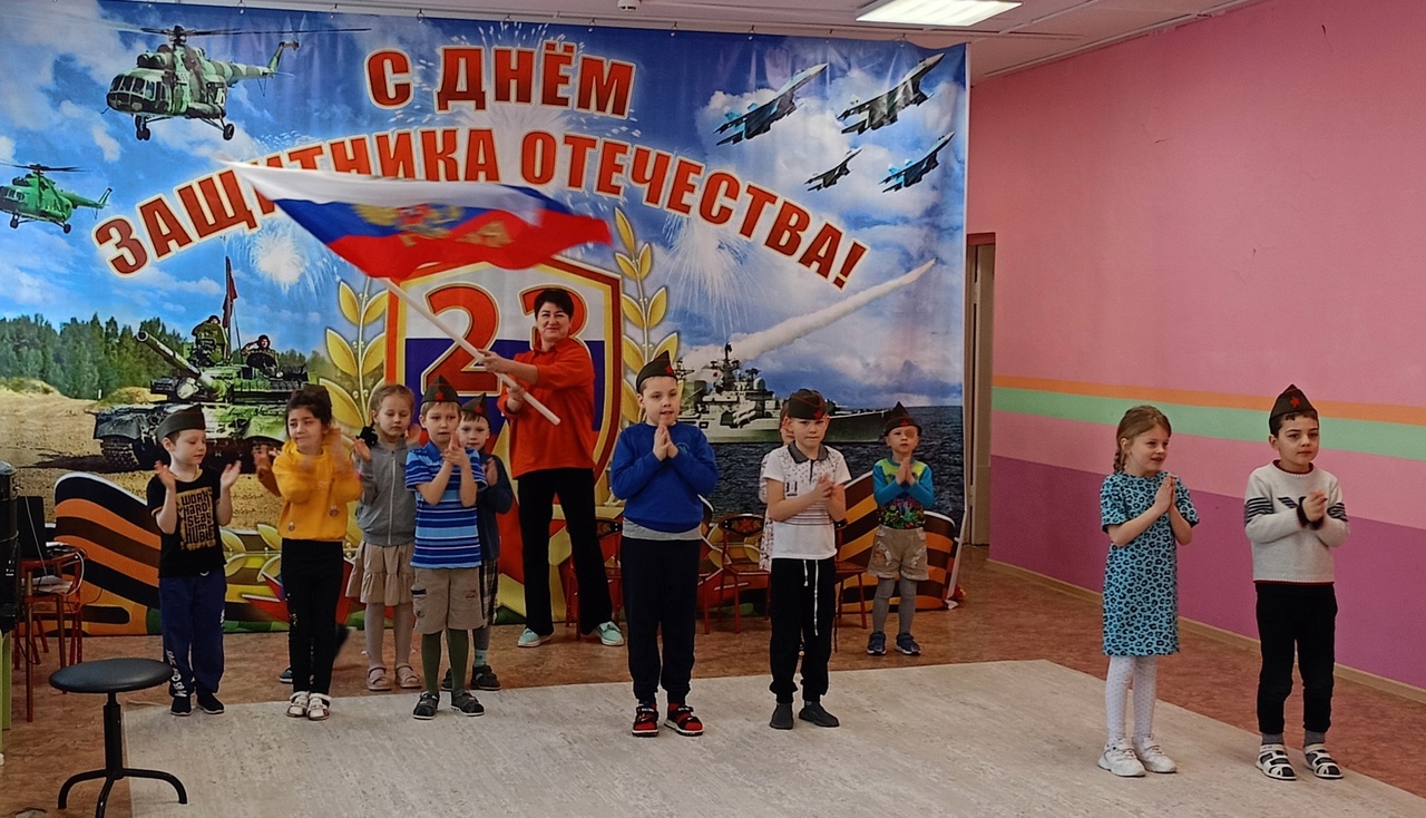 Дети с восторгом встретили героя, прочитали стихи, спели песню, представили инсценировку «Бравые солдаты».