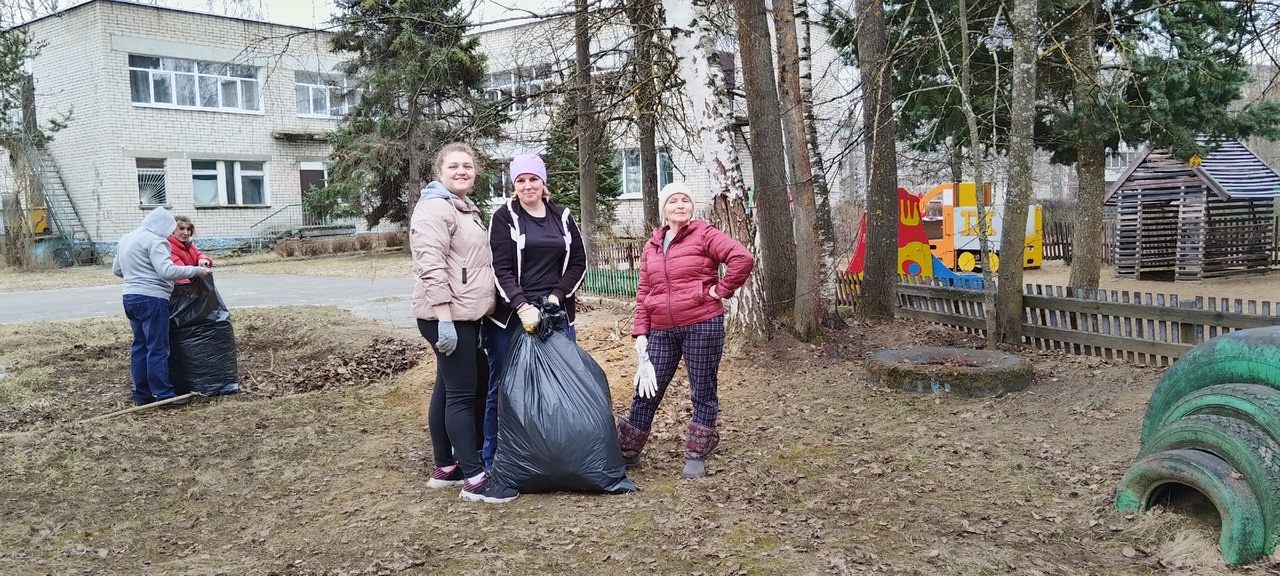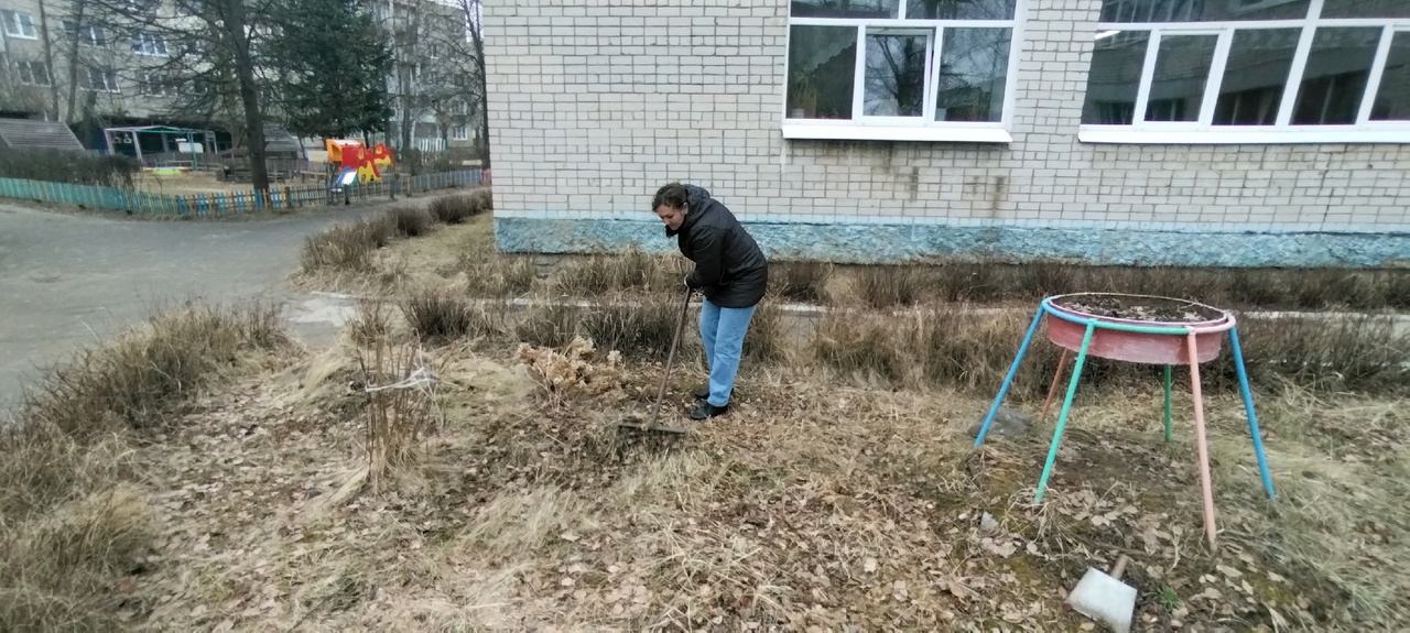 С хорошим задором, весело и дружно все вместе очистили прогулочные площадки, привели в порядок прилегающую территорию.