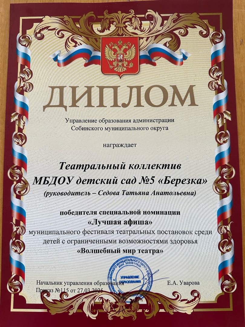 Воспитанники группы "Пчелки" под руководством опытных педагогов выступили с постановкой "Пчелки-подружки". Решением жюри наши участники награждены дипломом 3 степени. В номинации лучшая афиша мы победители