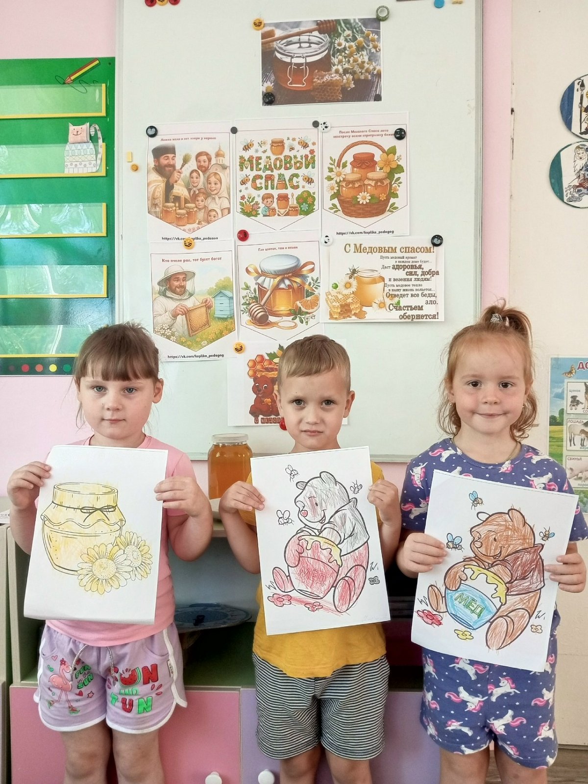 Воспитатели рассказали ребятам об истории возникновения праздника, познакомили с традициями празднования. В ходе беседы дети пополнили свои знания о пчёлах, их значении в природе, о пользе мёда и его применении. Играли в подвижные игры, смастерили маленьких пчелок из цветной бумаги. Некоторые ребята поделились своими рассказами о том, как они помогают дома дедушкам и бабушкам на пасеке, как пчелы собирают мед.