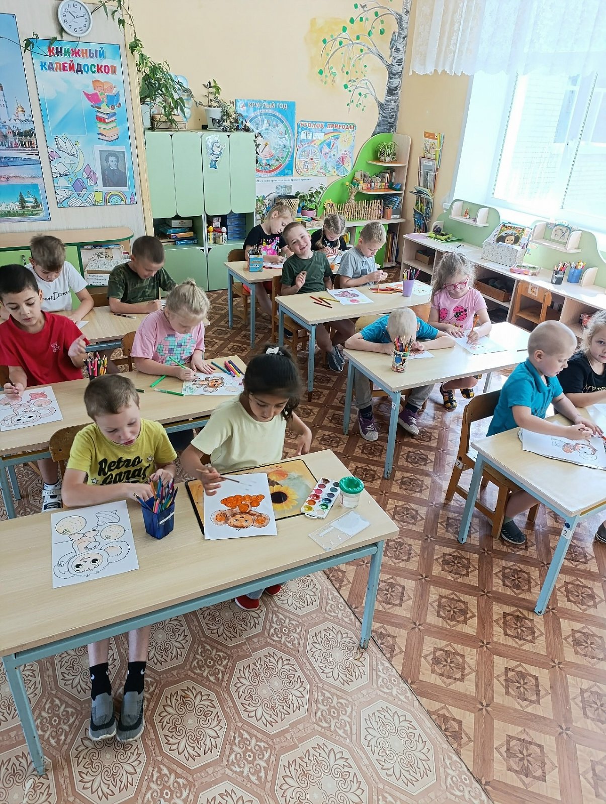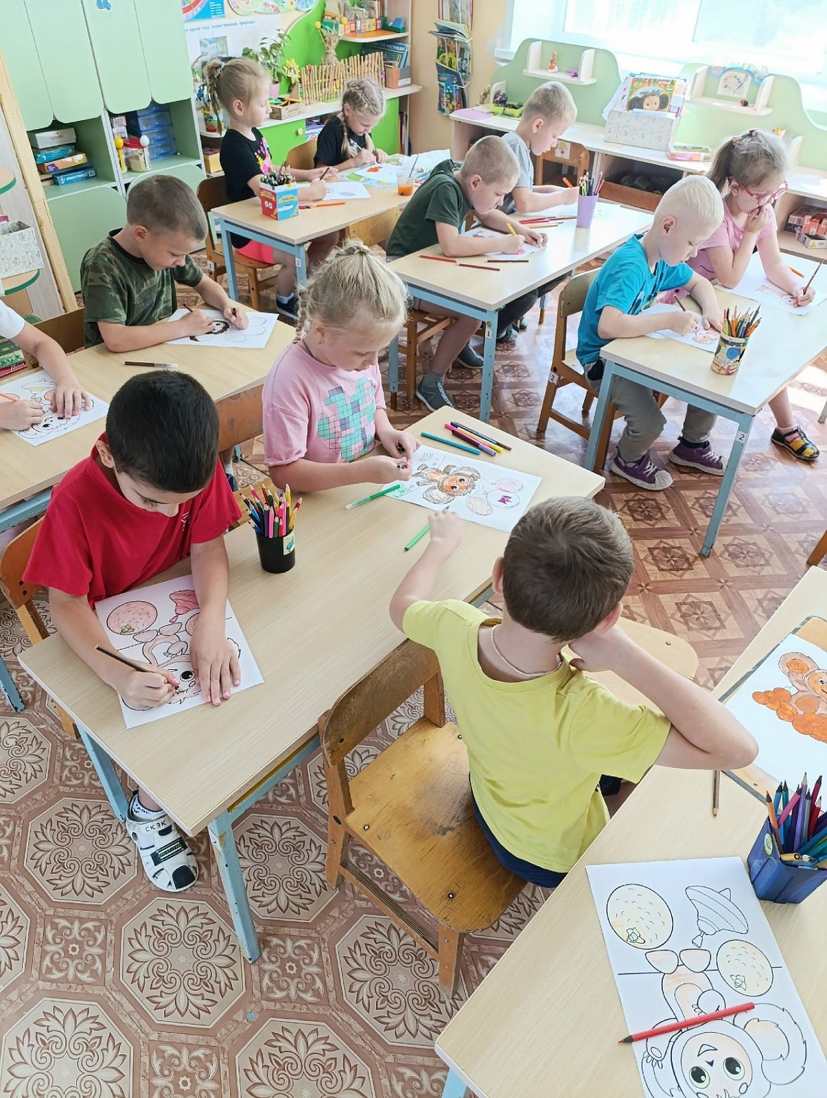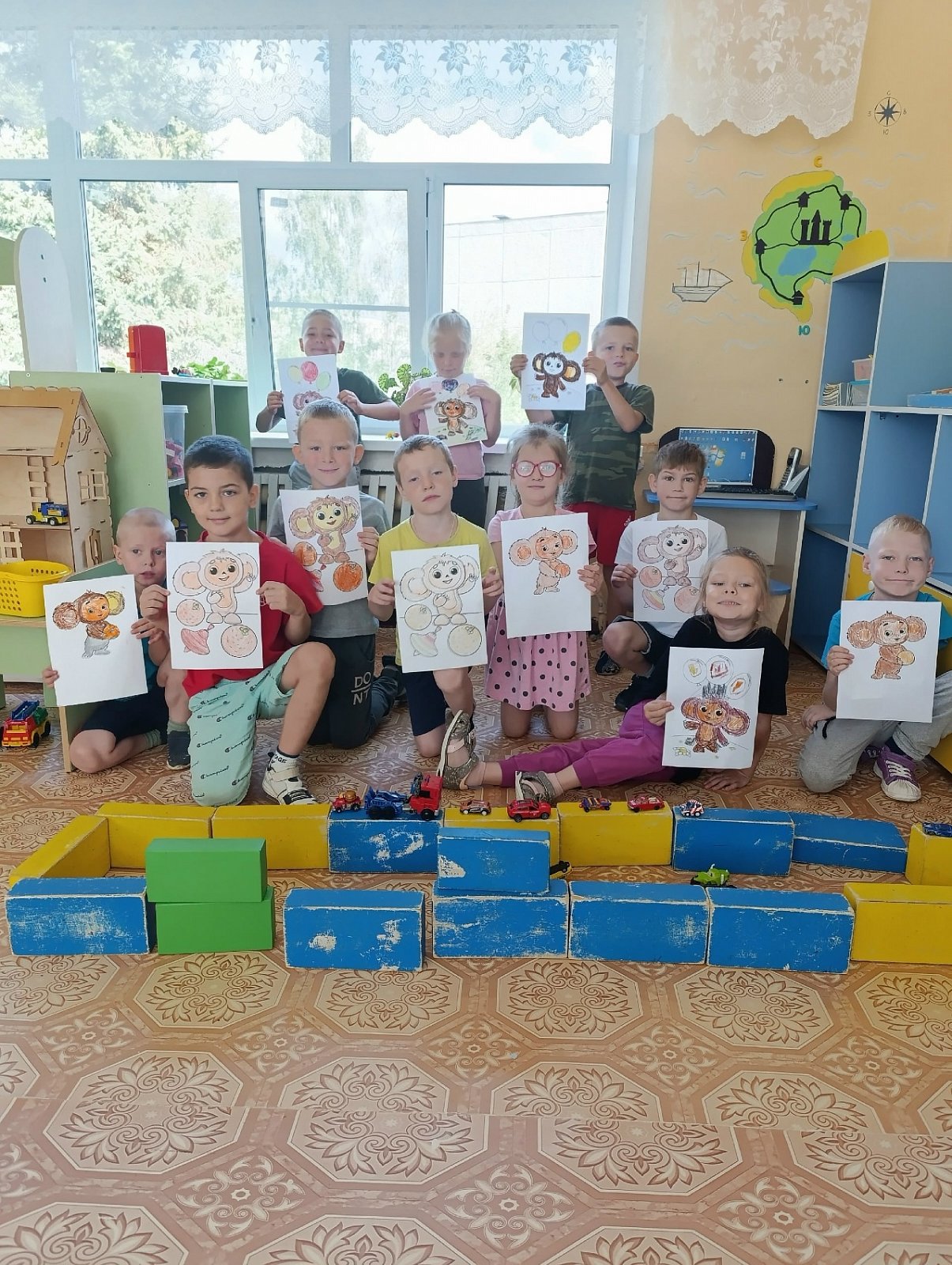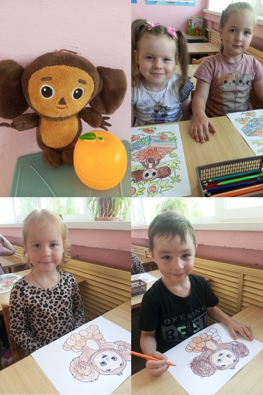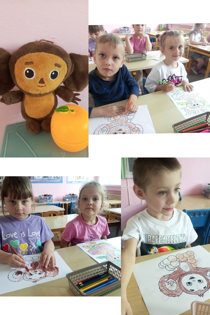 Дошколята нарисовали для Чебурашки множество воздушных шаров и портретов с его изображением.