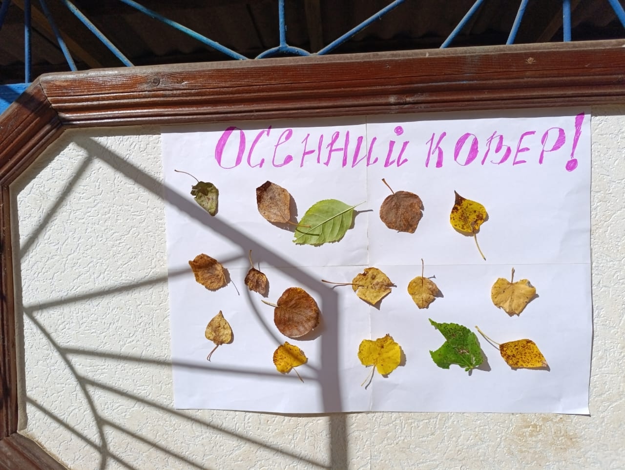 Ребята группы «Ромашки» выполнили аппликацию на тему «Осенний ковер». Воспитанники собрали с прогулки опавшие осенние листья для аппликации.