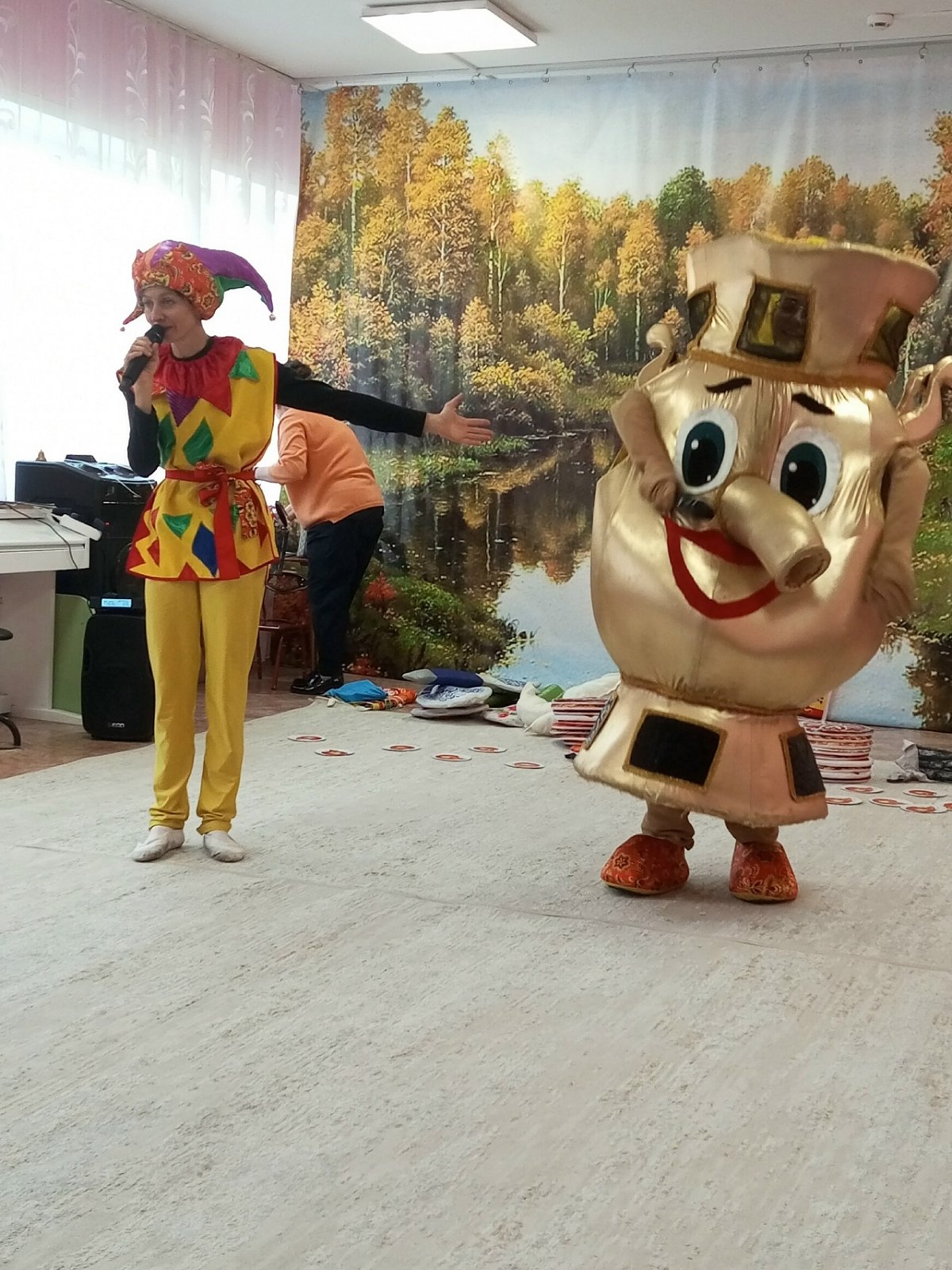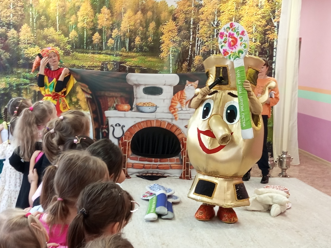 В нашем детском саду прошло интерактивное мероприятие «Почему самовар пузатый?» Дошкольники узнали об истории русского самовара, играли в интересные игры « Заготовим дрова», « Испечем пирожки в печи», соревновались на блинной дорожке , танцевали пляски с гармошкой. Благодарим артистов театра «Квестшоп» за проведенное развлечение для детей.
