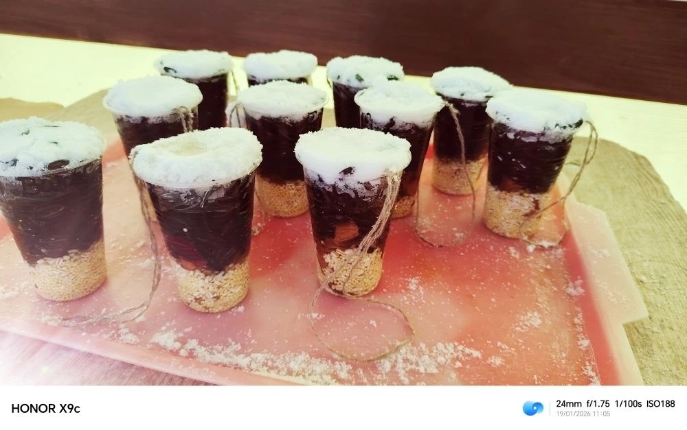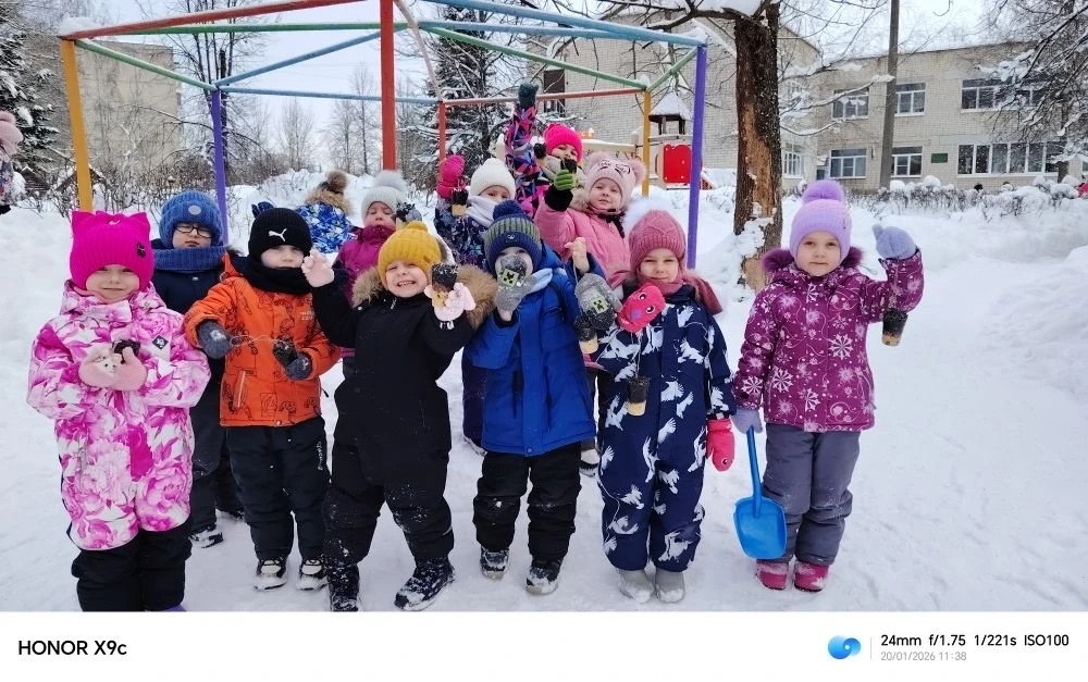Ребята старшей группы нашего детского сада открыли столовую для пернатых и развесили на участке кормушки -стаканчики.