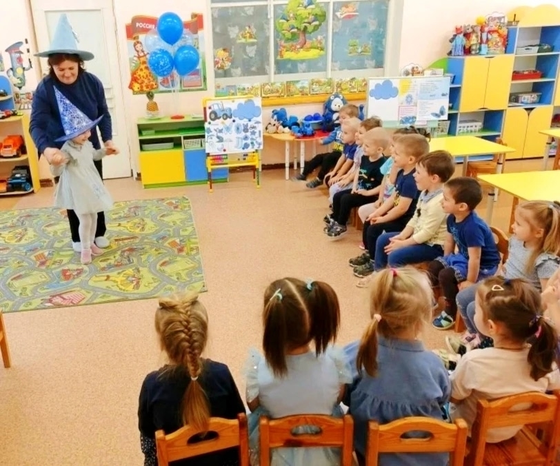 Во второй младшей группе «Ромашка» наступил особенный день – день синего цвета! Весь день посвящён удивительному миру синего цвета. Наши маленькие исследователи пришли в нарядной синей одежде, словно маленькие капельки моря, готовые к новым открытиям.