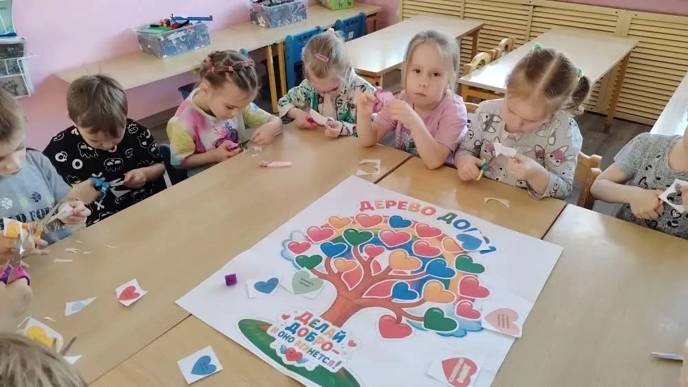 - воспитатели старших групп организовали совместное творчество с детьми - стенгазету «Дерево добра». С детьми была проведена беседа «Что такое доброта,добрые поступки?» . Всю неделю ребята старались совершать добрые поступки.